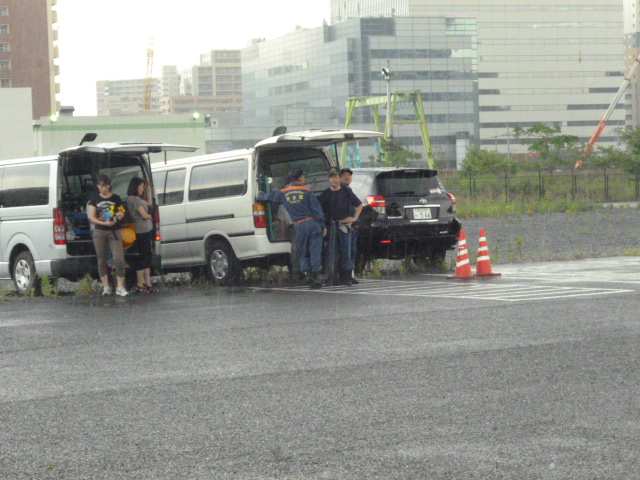 17:00開始に向けて、役員の皆さんは濡れながらただ雨の中で待つだけです。