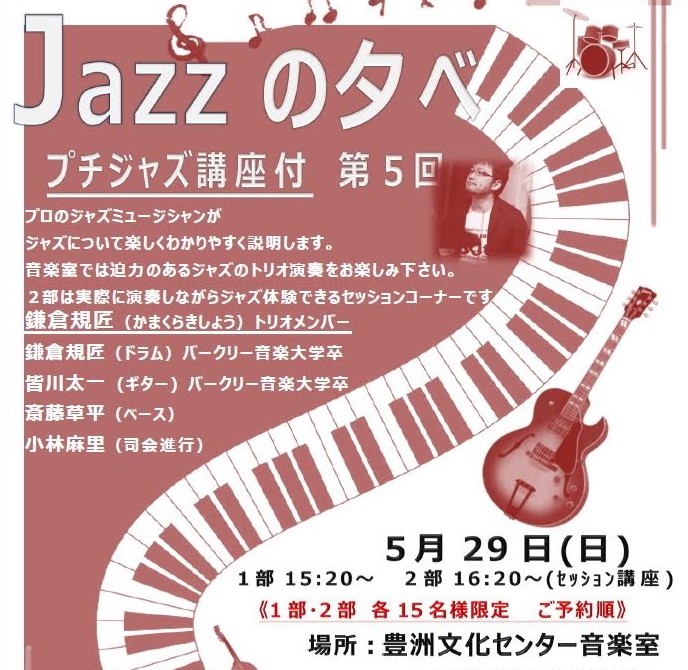5/29 (日) 音美都主催 Jazzの夕べ&Jazzのリズムワークショップ プチジャズトーク付