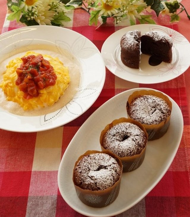出典:東京ガス:東京ガス料理教室/コース内容詳細/オリジナル教室 バレンタイン特別企画 とろけるフォンダンショコラ&オムライス教室