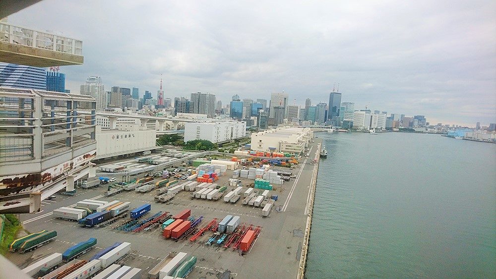 芝浦のコンテナヤードの先にさっきよりもハッキリと東京タワーが見えます。