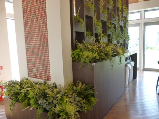 入口を入ってすぐ、都会のオアシスのような緑が溢れるセルフカフェコーナー。