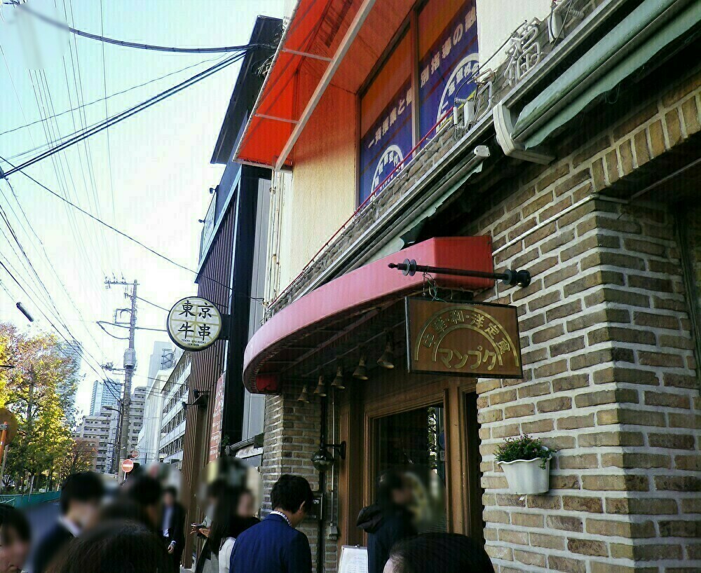 時刻は、12時15分。豊洲駅周辺でお昼を食べようとすると、この時間は既にどこのお店も行列ができています。「マンプク」の看板の下にも長い行列が!