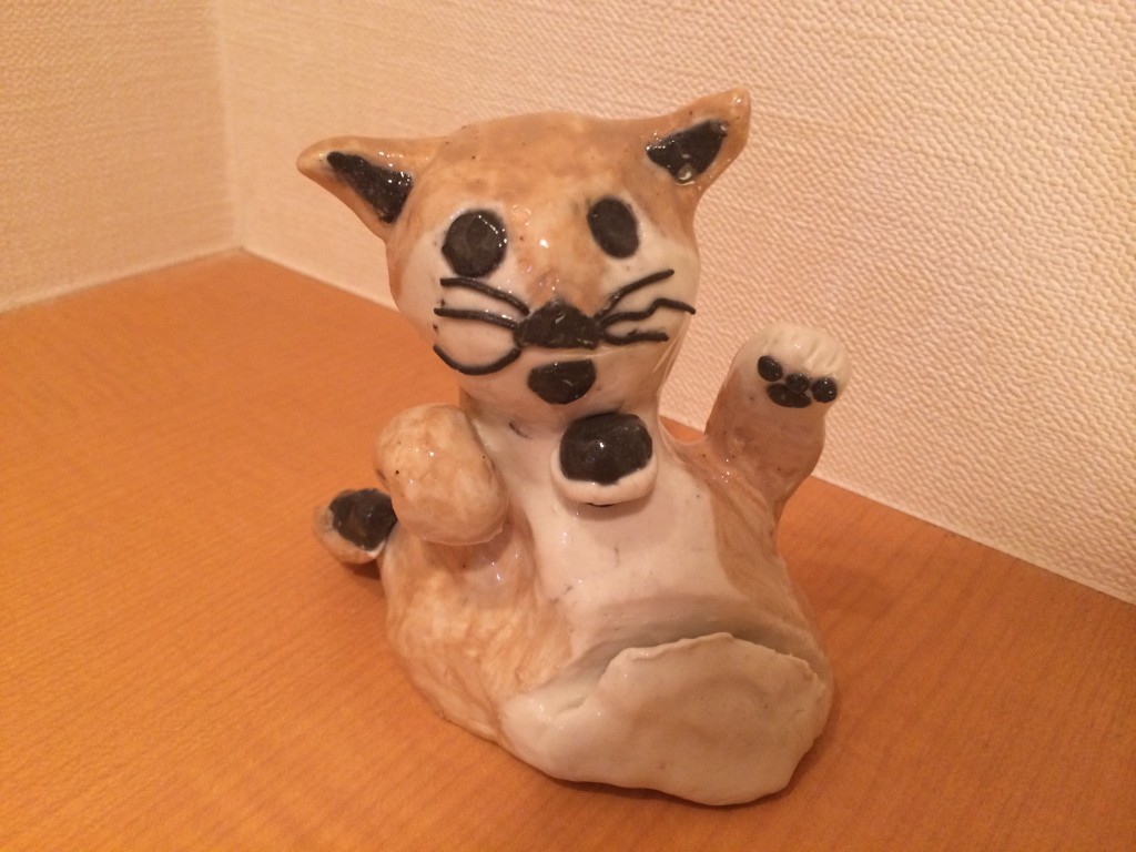 このネコちゃんの置物は、我が家のコタローちゃん(♂6歳)です。