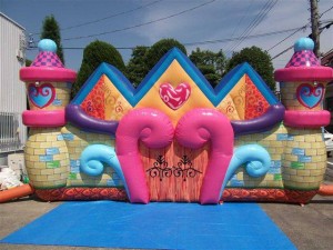 エアー遊具も 昨日と違って、ふわふわプリンセススライダーが登場! 男の子も王子様気分で、プリンセスと一緒に遊んでくださいね♪