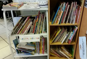 ▲~“ファミリー向けのお店にしたかった”という加藤店長の思い~子供向けの本棚