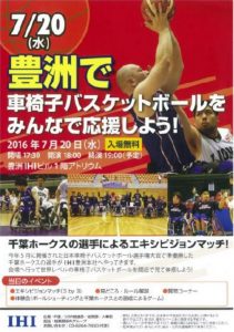 今年5月に開催された「日本車椅子バスケットボール選手権大会」で準優勝した”千葉ホークス”の選手が、7月20日IHI豊洲本社にやってきます!豊洲で車いすバスケットボールをみんなで応援しよう!