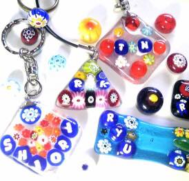 色とりどりのガラスパーツの中から花や星など好きな物を貼り、ガラスでオシャレなアクセサリーを作ります♪選ぶパーツや土台の色が違うだけで、オリジナルのアクセサリーが作れちゃう♪ 手作りって楽しいですね!