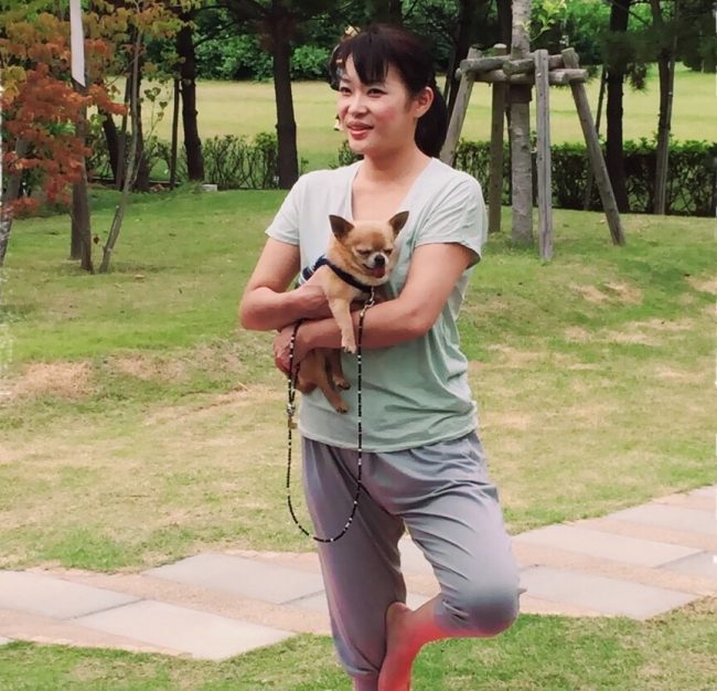 愛犬と一緒に体を伸ばしたいから~!ドッグヨガしましょ!!