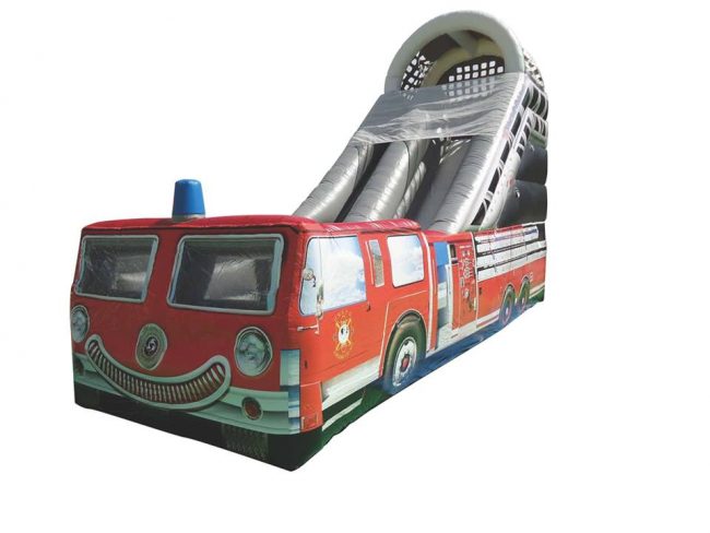 スライダーはしご車は、エア遊具だから安心・安全。大きなバスの中で、思いっきり飛んだり跳ねたり!