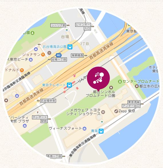 新交通ゆりかもめ「お台場海浜公園」 徒歩5分