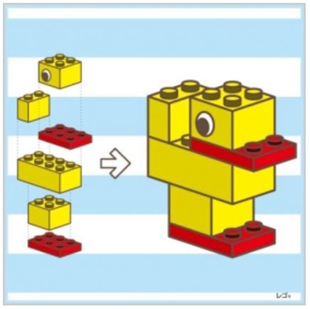 集めたブロックパーツの組み方を変えるだけで、アヒルが何通りもできちゃう♪