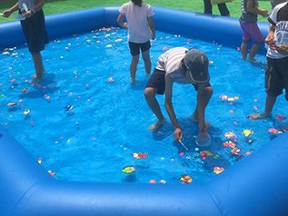 明日は8/20(日) じゃぶじゃぶプールでおもちゃすくいにチャレンジ!