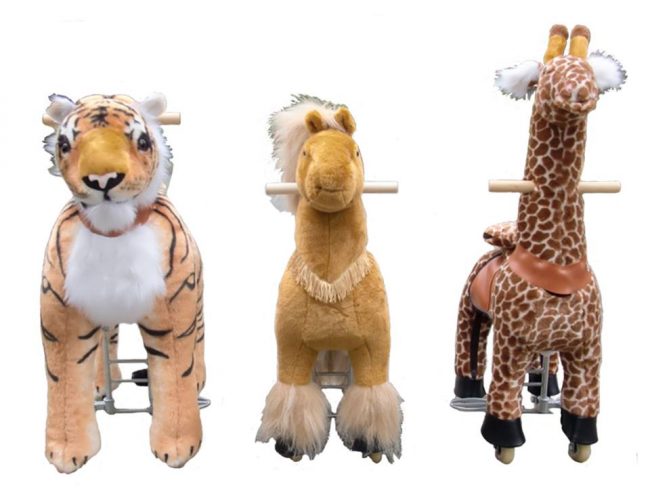 ふしぎな乗り物アニマルレーサー。どうぶつの背中にまたがって、体をゆすると前進。