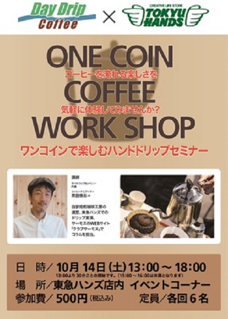東急ハンズららぽーと豊洲店にて、「ワンコインコーヒーワークショップ」を開催いたします。