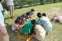 防災訓練とおもちゃの交換会「かえっこバザール」を組み合わせた、楽しみながら学べるイベントです。