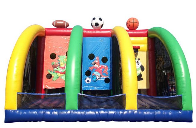 ラグビー・サッカー・バスケットのボールを投げて、狙った穴に入れてみよう!