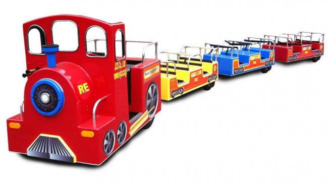会場内をカラフルなトレインに乗って散策してみよう。
