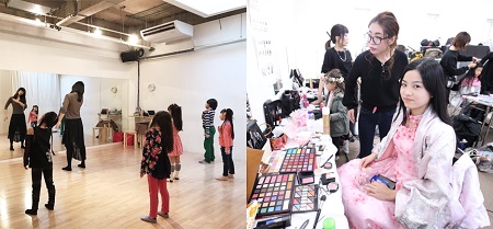 さらに、プロのメイクの方にヘアメイクをしていただき、キッザニア東京の劇場内で特別ショーに出演します。