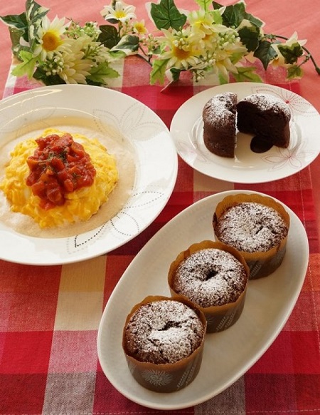 出典:東京ガス:東京ガス料理教室/コース内容詳細/オリジナル教室 バレンタイン特別企画 とろけるフォンダンショコラ&オムライス教室