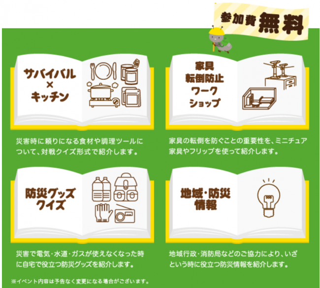 また参加した方には、もれなく参加賞をプレゼント! さらに、抽選で防災グッズなどがあたります。