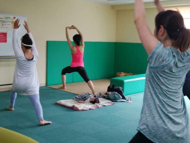 現在は、自分自身の産後の経験から、お子さん連れのママにもリフレッシュしていただくために、お子様連れOKのレッスンを開催しています。