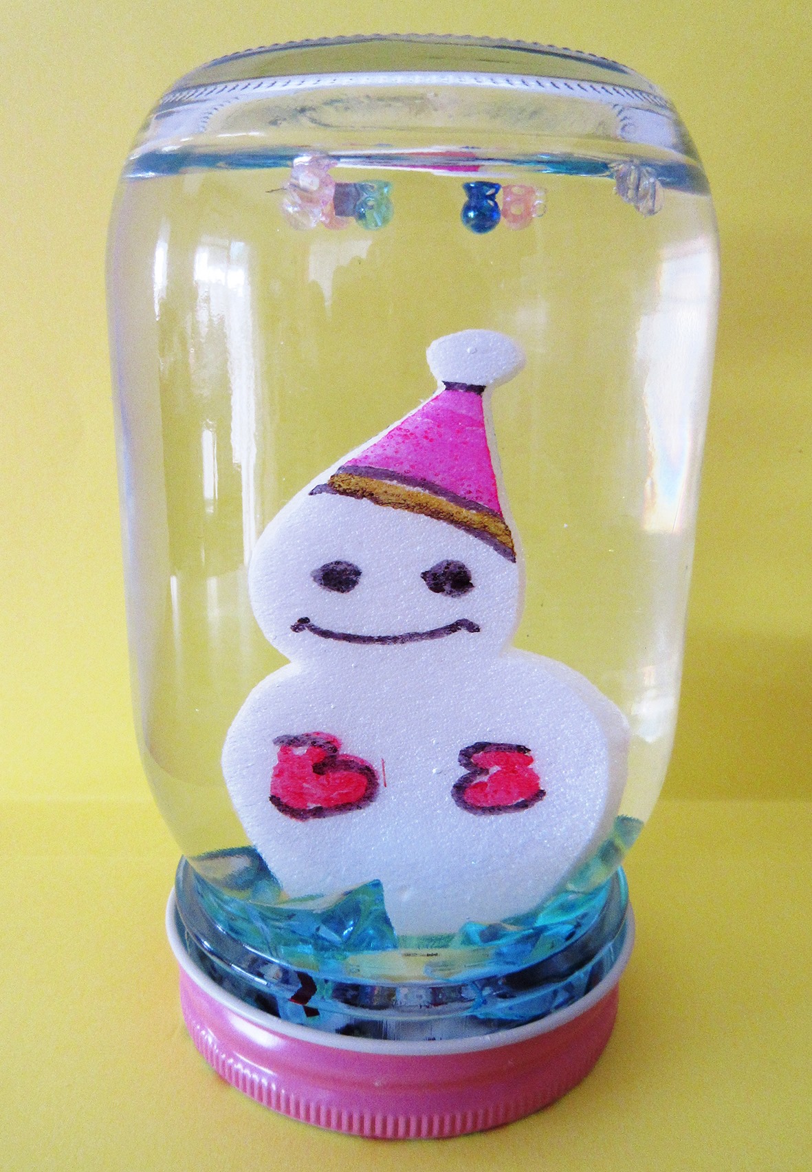 スノードーム風のガラス瓶を素敵にアレンジ♪キラキラと降るフィルムが幻想的です。