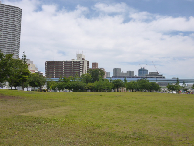 豊洲公園付近では、ランニングをしている人をよく見かけます。広い芝生の公園はスポーツをしたり、親子で遊ぶのにも良い環境ですね。
