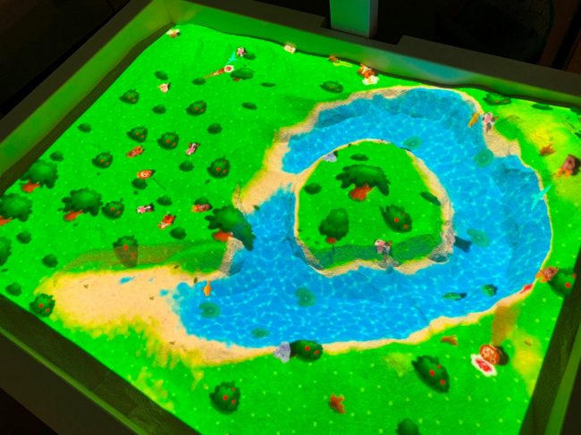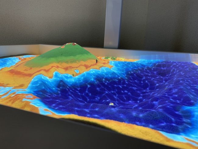 砂の高低さを認識することでリアルタイムで映像が切り替わる未来型の砂場遊びです。