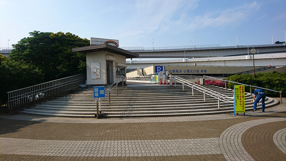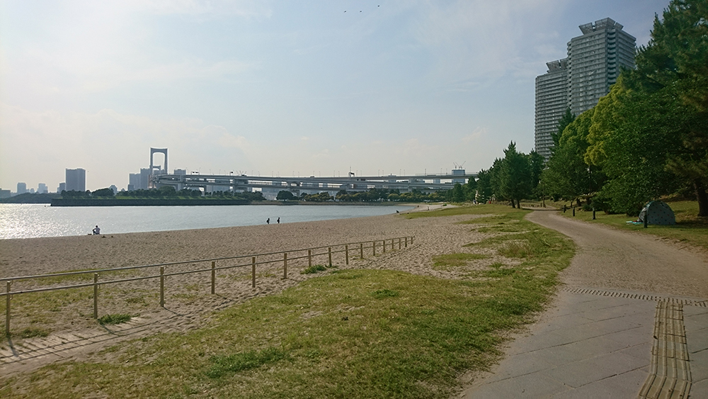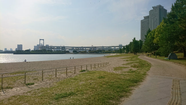 「お台場海浜公園」からレインボーブリッジに向けて5分程歩くと…