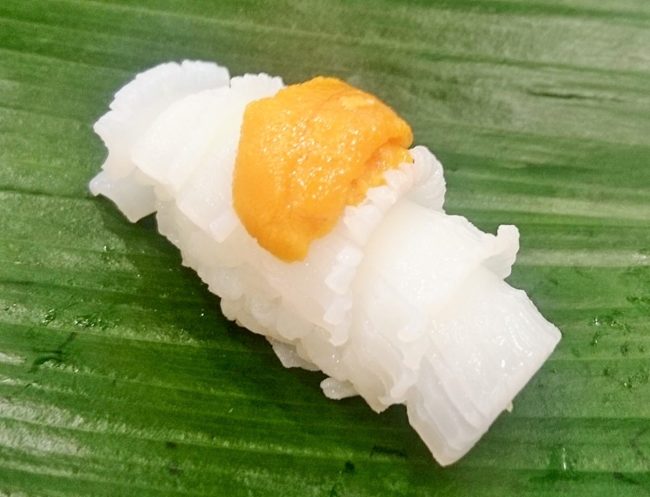 イカのコリコリ感とウニとのハーモニーがおいしい!