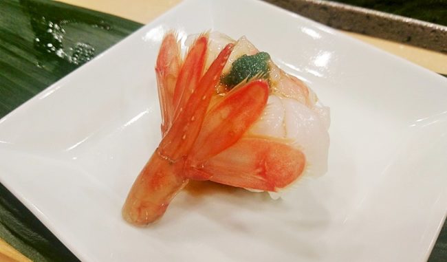 上に乗っている緑の物体は海老のタマゴだそうです。