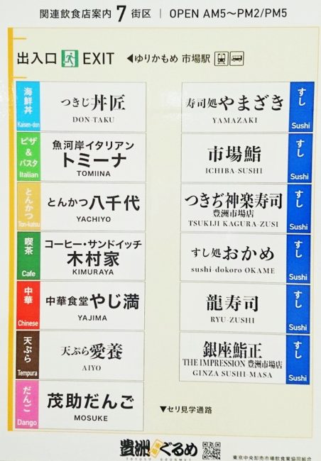 月曜の朝にも関わらず、たくさんの観光客でいっぱい★★★豊洲市場の飲食店は大きくわけて3つの棟(水産仲卸売場棟、管理施設棟、青果棟)に分かれています。
