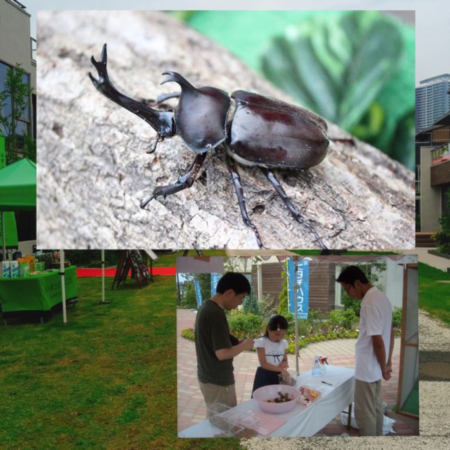 豊洲まちなみ公園内5ヶ所に設置してある昆虫クイズに答えて、かっこいいカブトムシをゲットしよう!