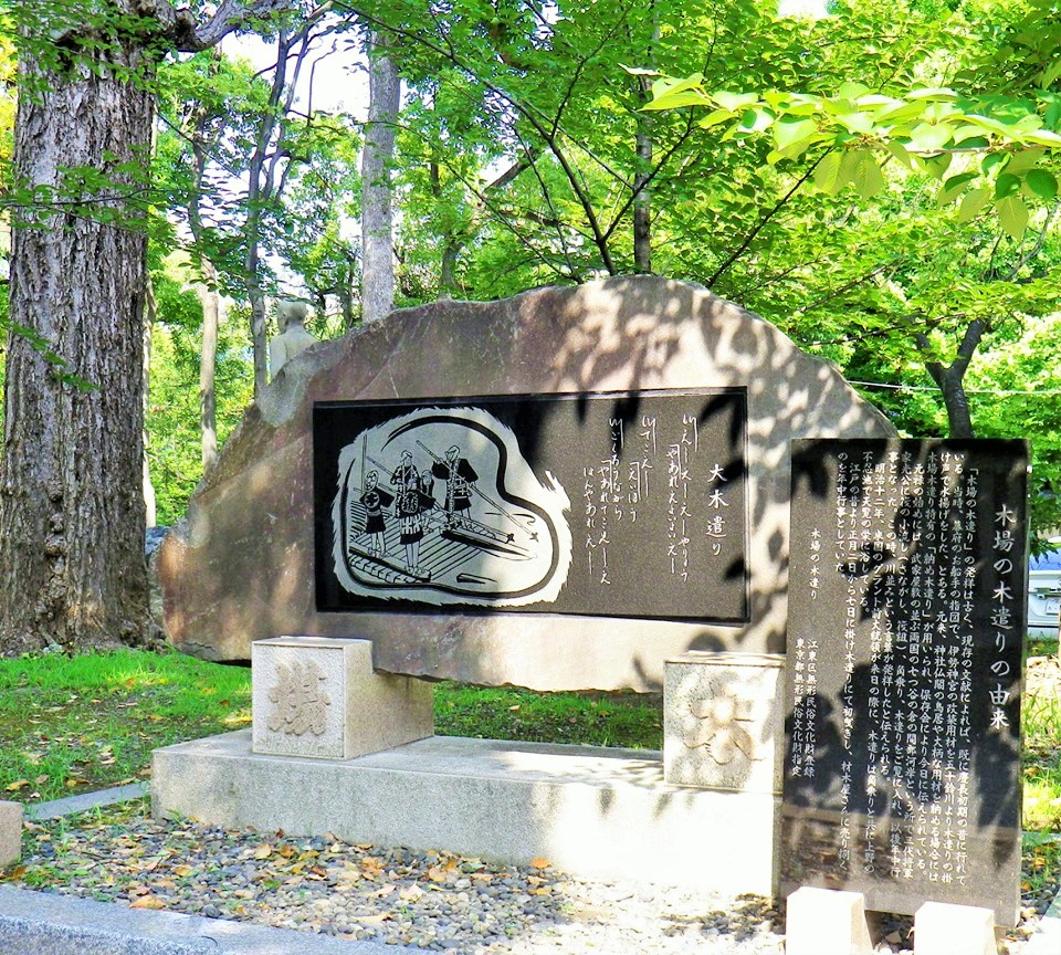 翁は深川黒江町(現・門前仲町1丁目)に住み、測量旅行出発にあたっては必ず当宮を参拝していたことから縁りの地であるこの八幡宮に2001年10月20日に銅像が建てられたそうです。