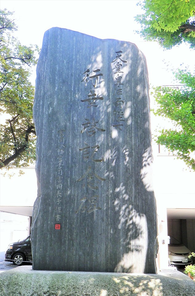 この石碑は2012年8月12日に天皇皇后両陛下が富岡八幡宮に御参拝され、東京大空襲の被災者の方々とご懇談の後、町神輿の連合渡御を御覧になられたそうです。この歴史的な慶事を記念して記念碑の建立が望まれ、氏子の皆様や神輿連合会の方をはじめとする多くの有志の皆様によりこの記念碑が奉納されたそうです。