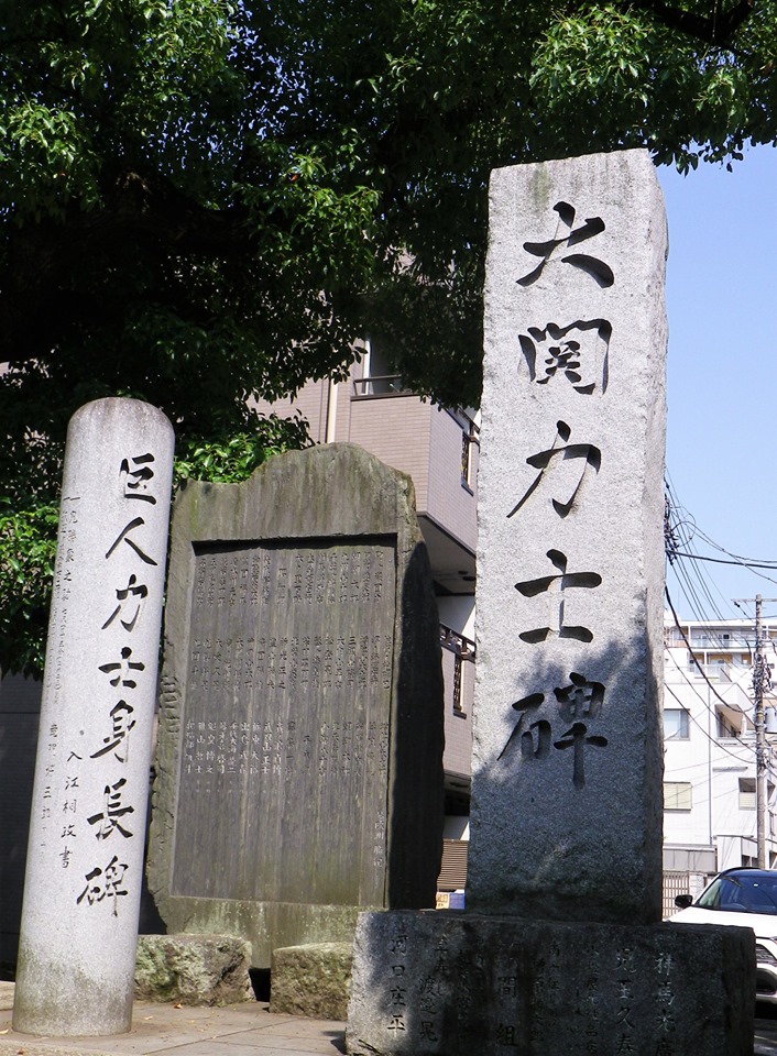 倉庫業に従事する人々のあいだに伝承された力くらべの曲芸、力持の碑、力持を記録した(力自慢をした人は力士というとか)力石が奉納されています。
