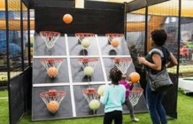 ゴールできた数やビンゴのように縦列横列をそろえた数で競うなど、様々な遊び方ができるバスケットボール!
