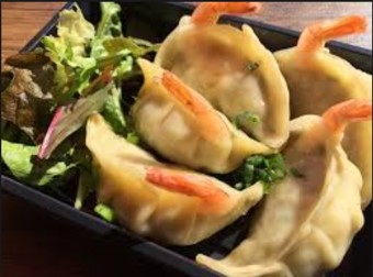 豊洲市場から仕入れた海老一尾まるっとまるごと餃子一個に豪快に包み込
