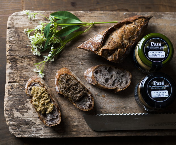 スペインのエキストラバージンオリーブオイル、オリーブ塩漬け、オリーブパテ、シェリービネガー、生ハムと魚のカルドスープ、天日塩な