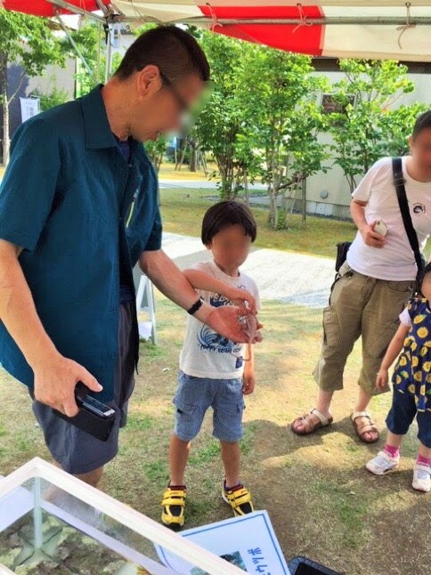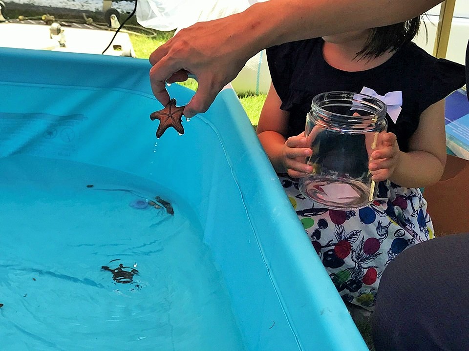 お子様方はタッチングプールの生き物に興味津々★