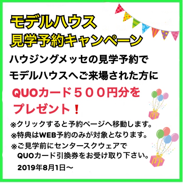 ※QUOカード6枚受け取った後のモデルハウス見学に対しましては対象外となりますが、引き続き見学予約はご利用いただけます。