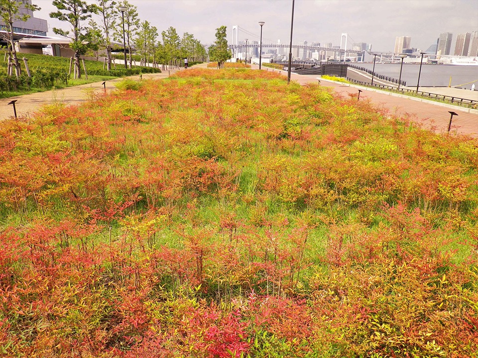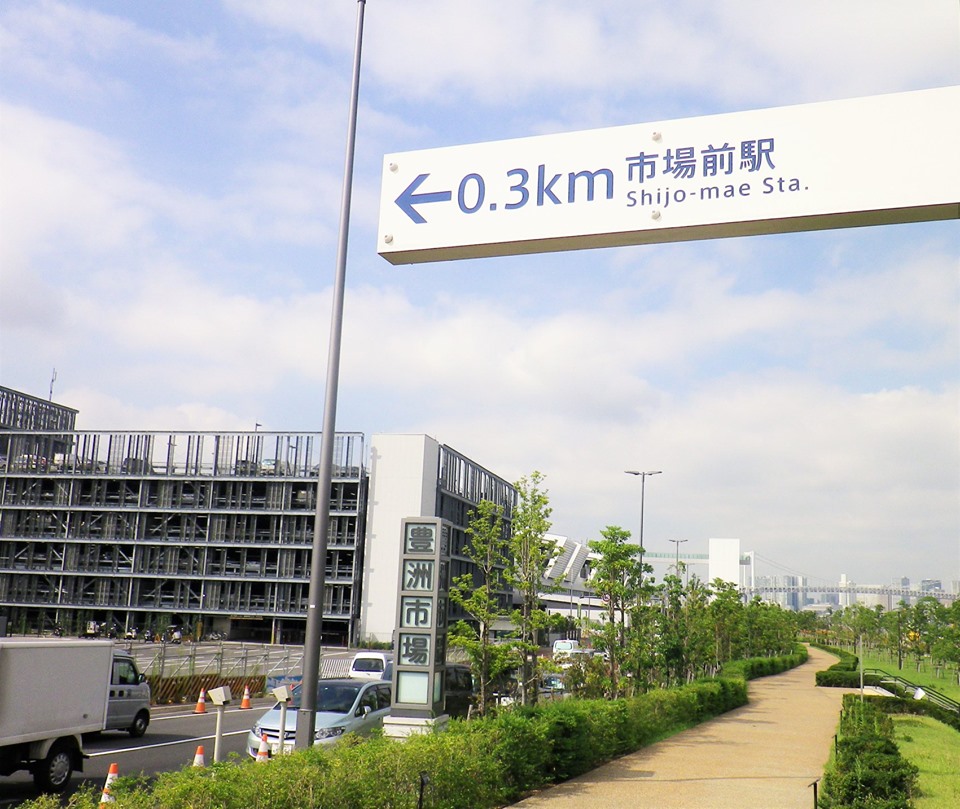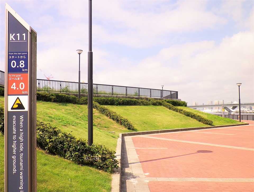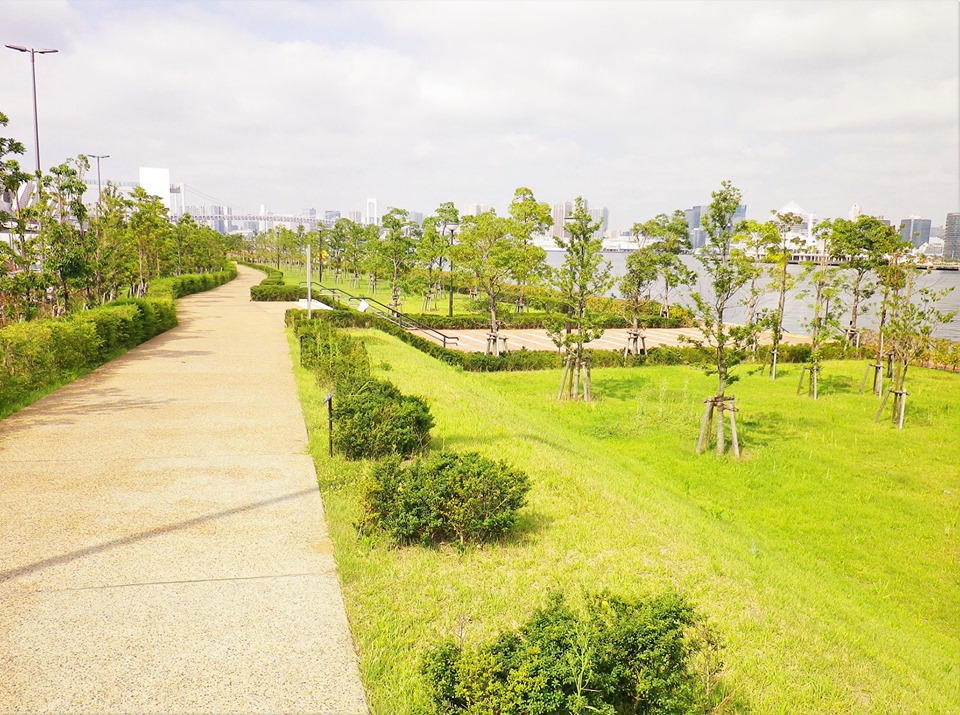 豊洲市場から歩いていくと、緑地帯が続きます。