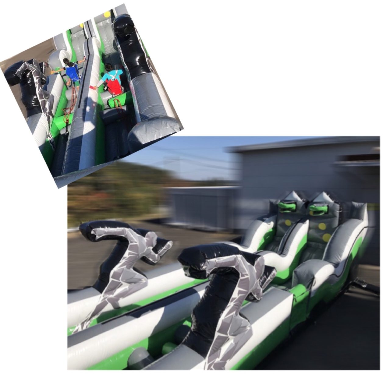 バンジーベルトを装着して後ろに引っ張られる力に負けないようにダッシュ!