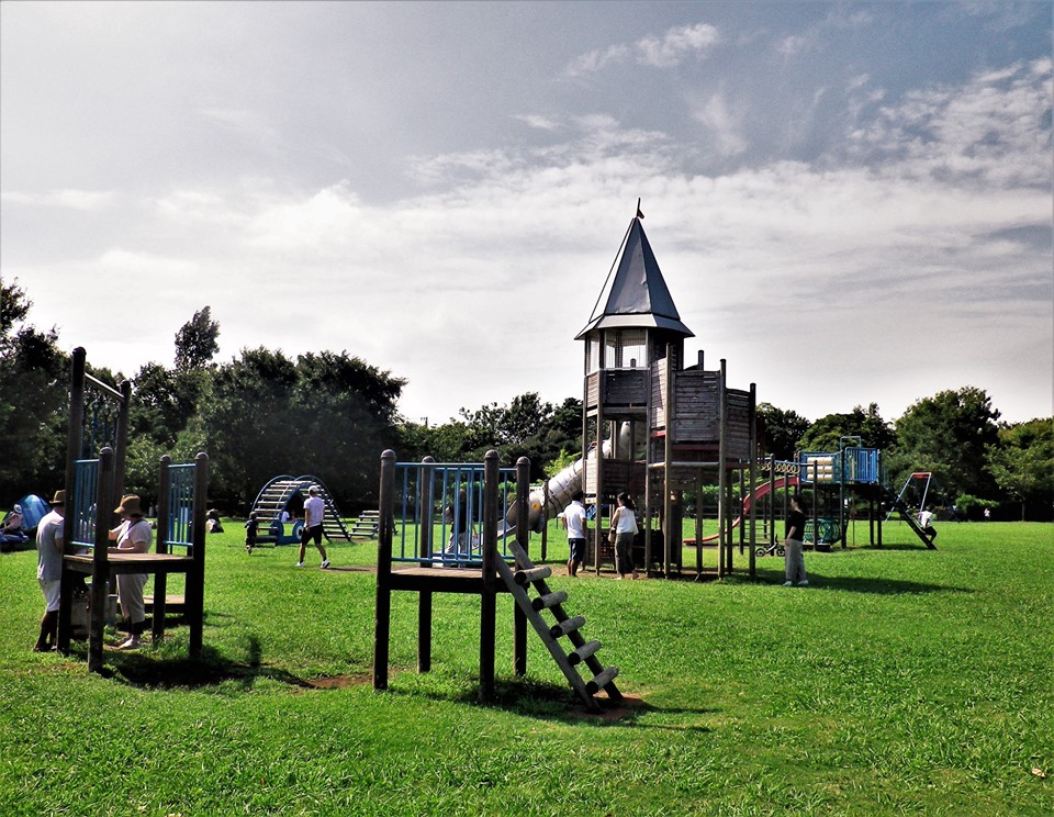 このプロペラをバックに芝生広場には遊具が並んでいました。