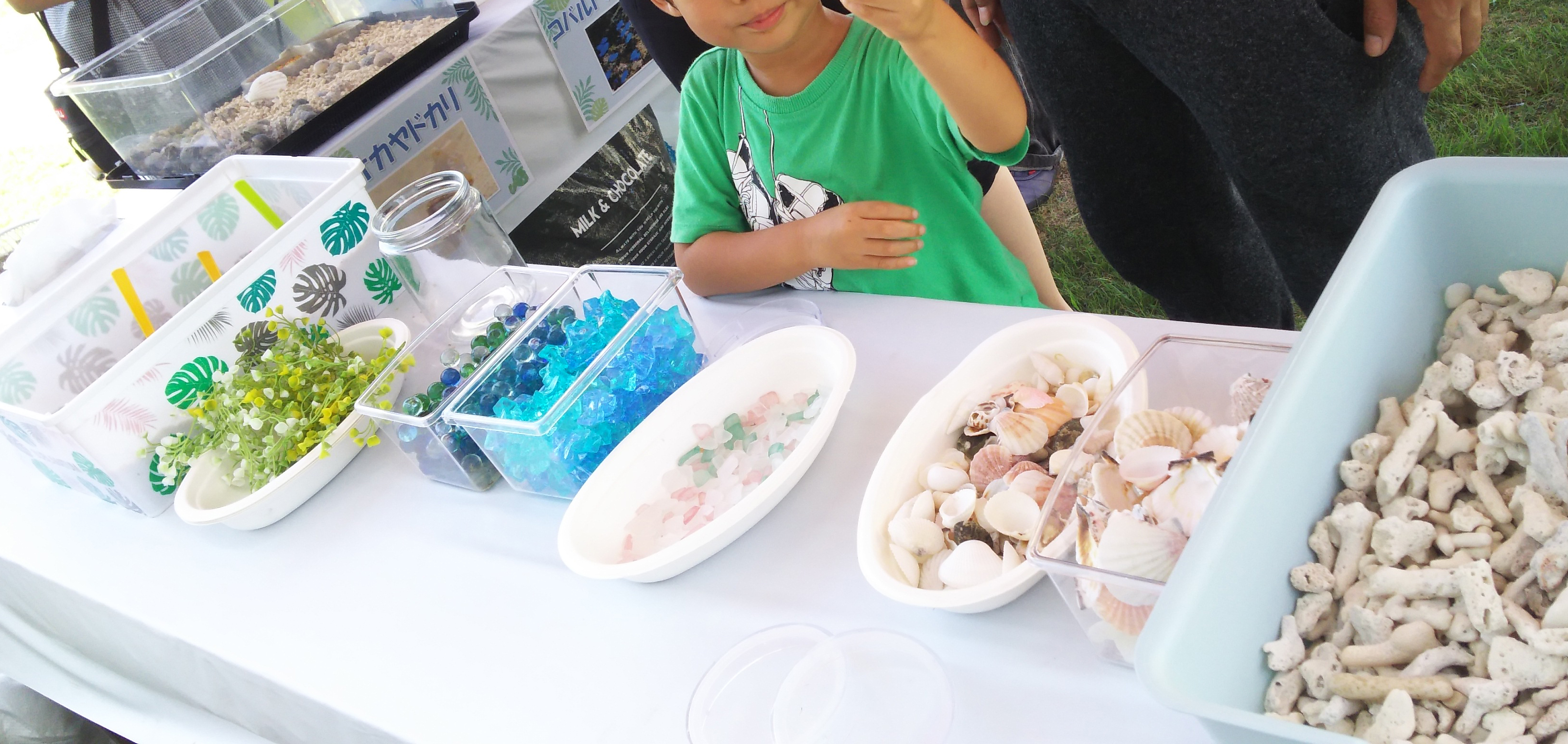 たくさんの方たちが思い思いに水草や貝をボトルに敷き詰め、可愛らしい魚たちに夢中の様子でした。