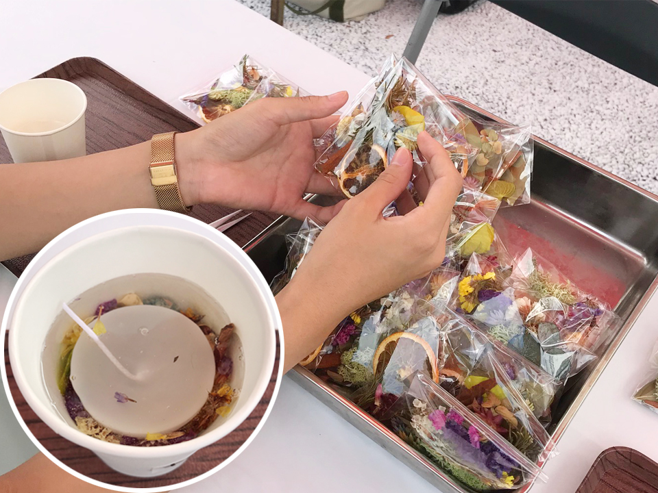 お好きなドライフラワーやフルーツを選んで、世界に一つしかないジャスミンの香りが漂う癒しのキャンドルを作っていただきました!