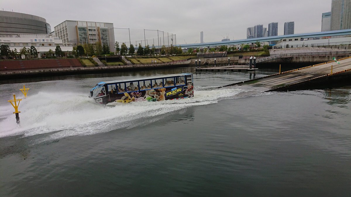 豊洲五丁目スロープは、水陸両用バスの通る写真スポットです。