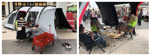 家族と過ごす、ライフスタイルをご提案します。会場内の各所で、さまざまなスタイルのテントを展示。原寸大のテントを見て、触って使い勝手などご体感いただけます。