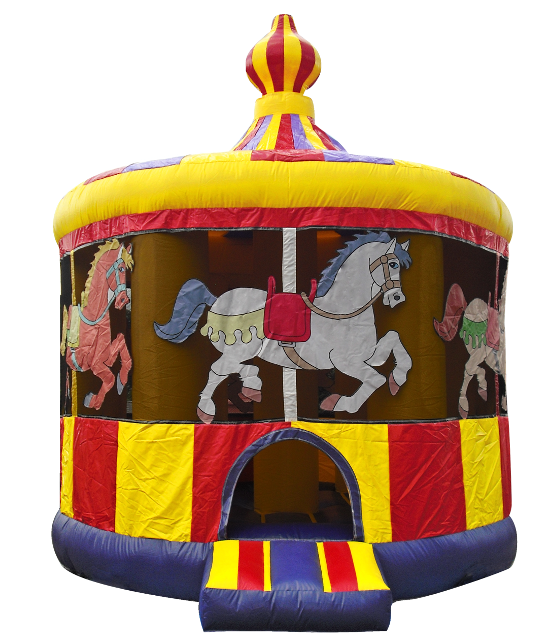 回転木馬をモチーフにしたエア遊具の登場です。ふわふわだから元気なお子様も安心。中に入っていっぱい遊ぼう!
