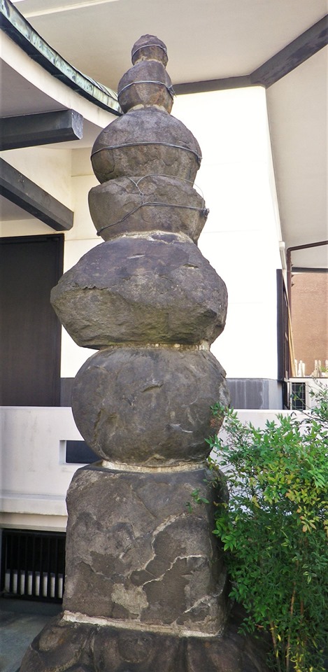 江東区の有形文化財に指定されています。現状は空輪が三つから成っていることなど五輪塔としては特異な形態をとっていますが、空輪と風輪は一石から造られて上部の二つの石は後に積んだものだそうです。高さ約3.5メートルという区内有数の大きな五輪塔で、地輪に貞享3年(1686年)の銘が見えますね。